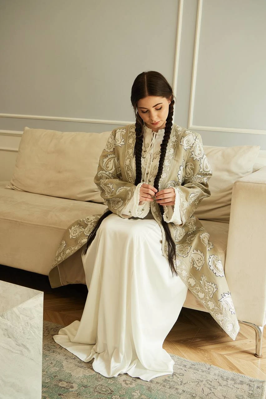 Crafted from natural breathable fabric, the chapan drapes gracefully and feels light and comfortable on the body while maintaining a luxurious appearance. The minimalist silhouette combined with meaningful historical symbolism creates a timeless balance between tradition and modern fashion.