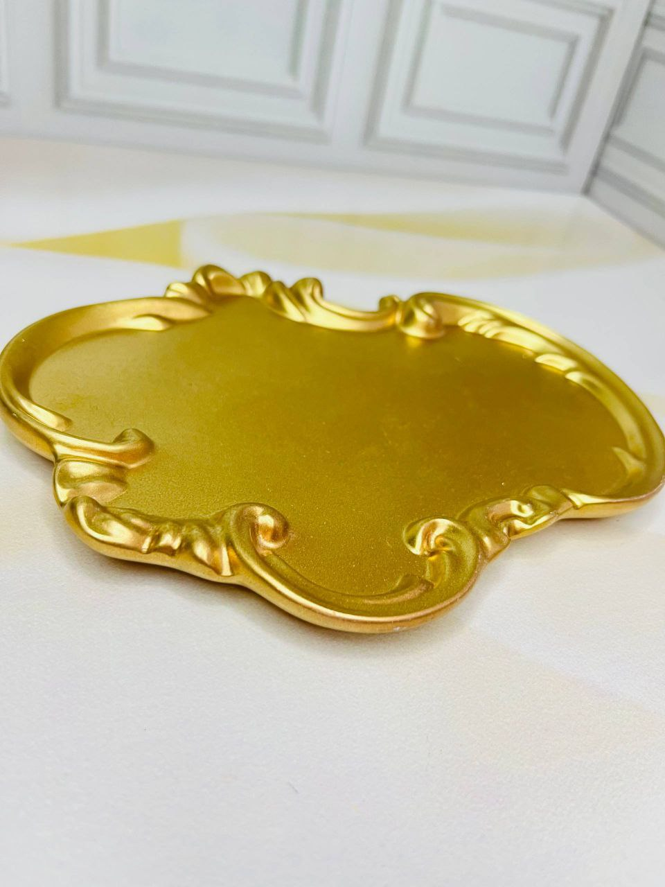 A decorative handmade stand made from high-quality eco gypsum. It features a smooth texture and a minimalist design, making it a perfect addition to home décor.