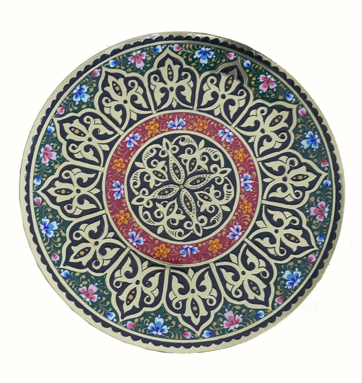 This elegant decorative plate, measuring 30 × 30 cm, features the traditional "Anor Guli" (Pomegranate Flower) motif, a symbol of abundance, harmony, and prosperity in Central Asian art. The design is richly detailed with balanced geometric and floral patterns, creating a timeless and sophisticated composition. The plate is hand-painted by skilled artisans using traditional techniques. Natural colors and fine ornamental lines highlight the craftsmanship and cultural authenticity of the piece. It is made from high-quality ceramic and coated with a smooth glazed finish, ensuring durability and long-lasting color brilliance. Perfect for interior and wall decoration, ethnic and cultural collections, and handmade art lovers. Each plate is a one-of-a-kind artwork, reflecting the beauty of traditional craftsmanship and the symbolic elegance of the Anor Guli pattern. This decorative plate adds a refined cultural accent to any space.