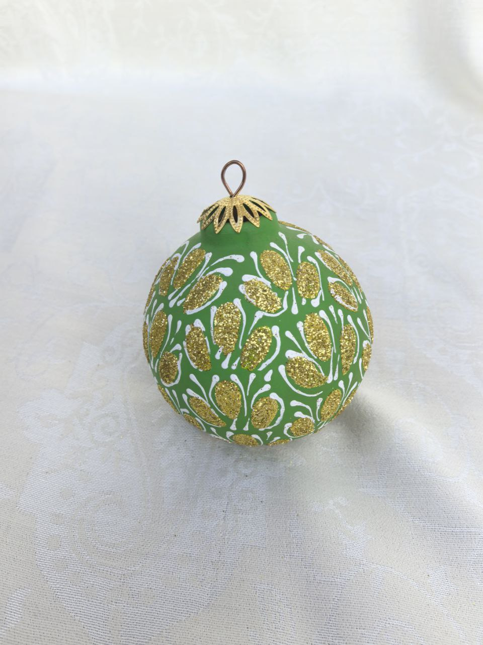 A handcrafted ceramic ornament shaped like a Christmas tree. Carefully made by hand, this decorative piece reflects authentic craftsmanship and attention to detail.