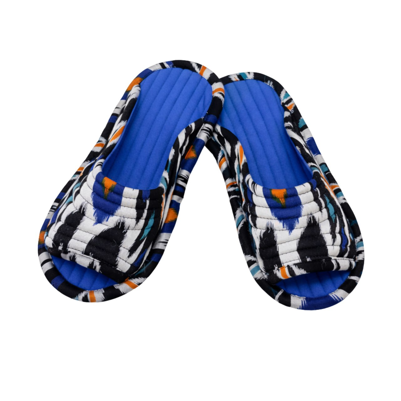 These handmade indoor slippers are crafted from high-quality textile decorated with a traditional ikat pattern. The soft cushioned insole and durable canvas sole provide warmth, softness, and reliable comfort for everyday home use. Lightweight and ergonomic, they combine national design with practical comfort, making them perfect for relaxing at home.