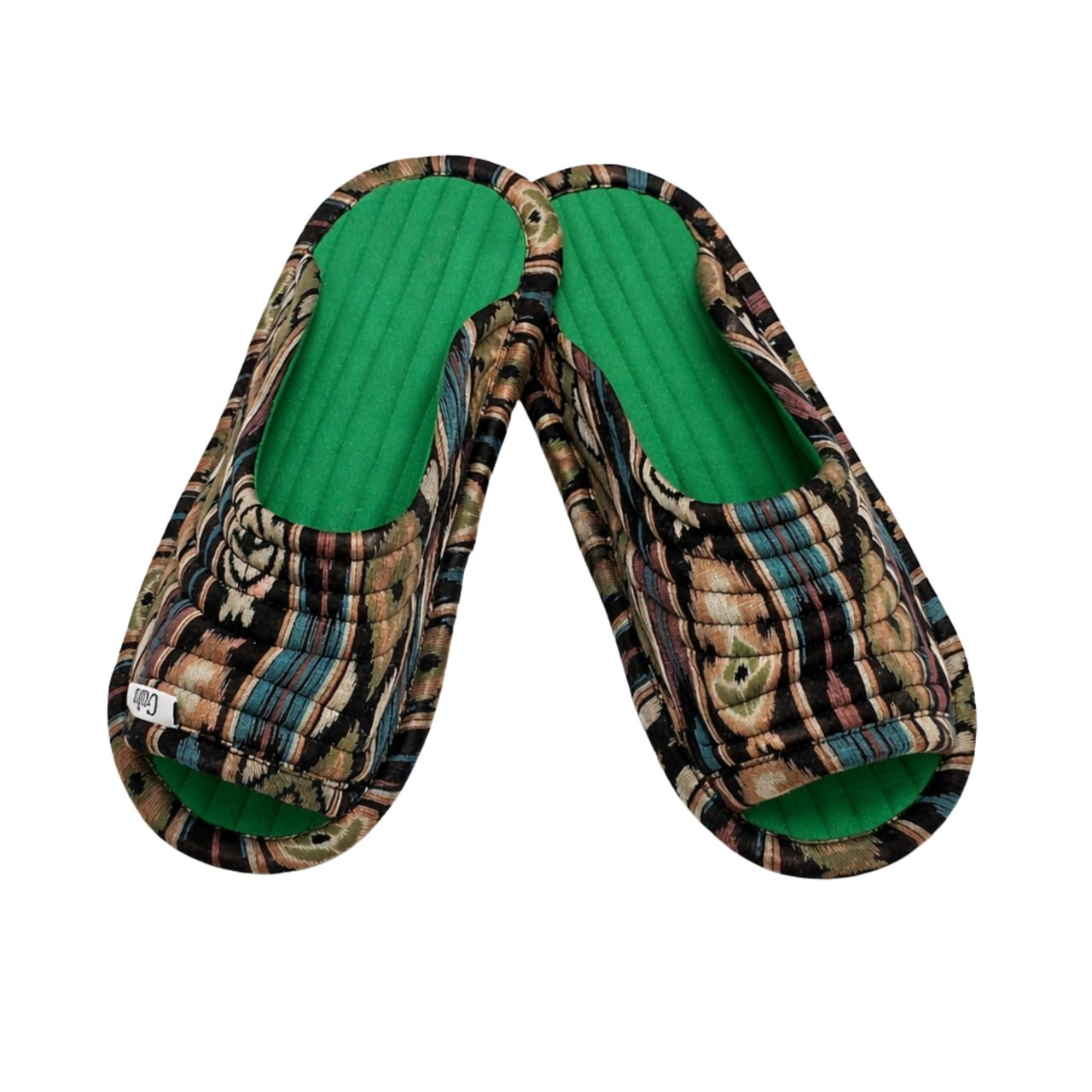 These handmade indoor slippers are crafted from high-quality textile with a traditional Uzbek ikat pattern. The soft inner lining and durable canvas sole provide warmth, softness, and reliable comfort for everyday use at home. Lightweight and comfortable, they combine national style with cozy functionality, making them a perfect addition to your home comfort.
