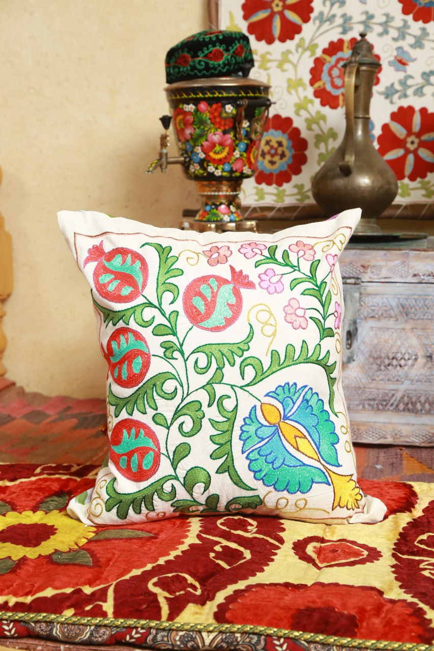 A decorative pillowcase crafted entirely by hand. Made from traditional cotton adras fabric, it reflects the beauty of Uzbek textile craftsmanship and authentic artisanal work.