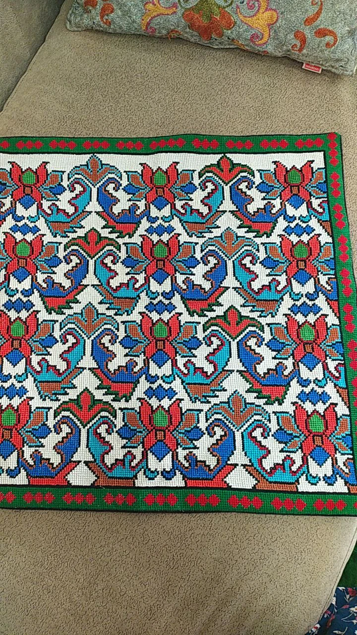 Made in a classic 45×45 cm size, every pillow cover is created entirely by hand, stitch by stitch. The Sanama-style embroidery produces a dense ornamental layout, where each line reflects the culture and heritage of Central Asian craftsmanship.