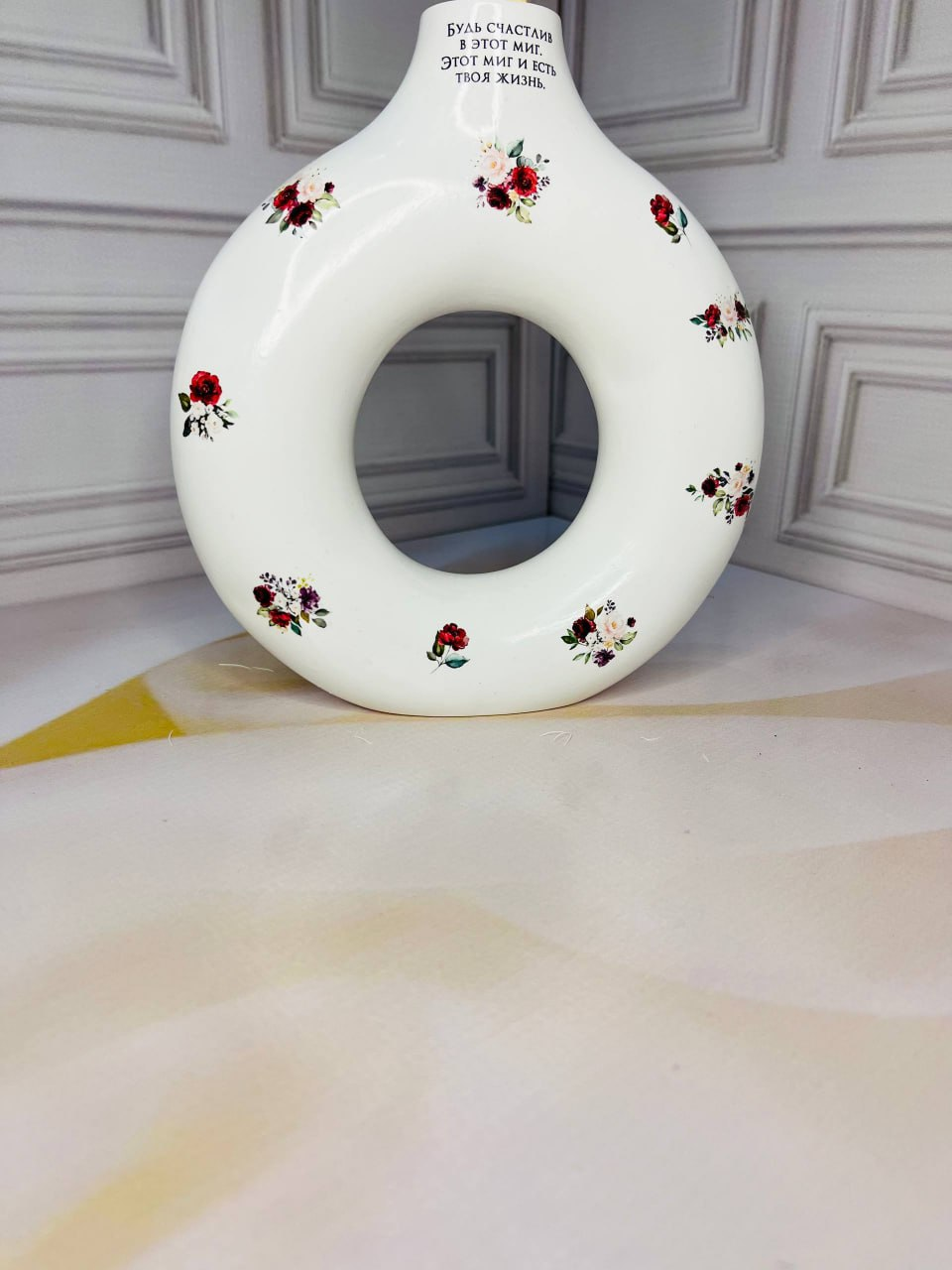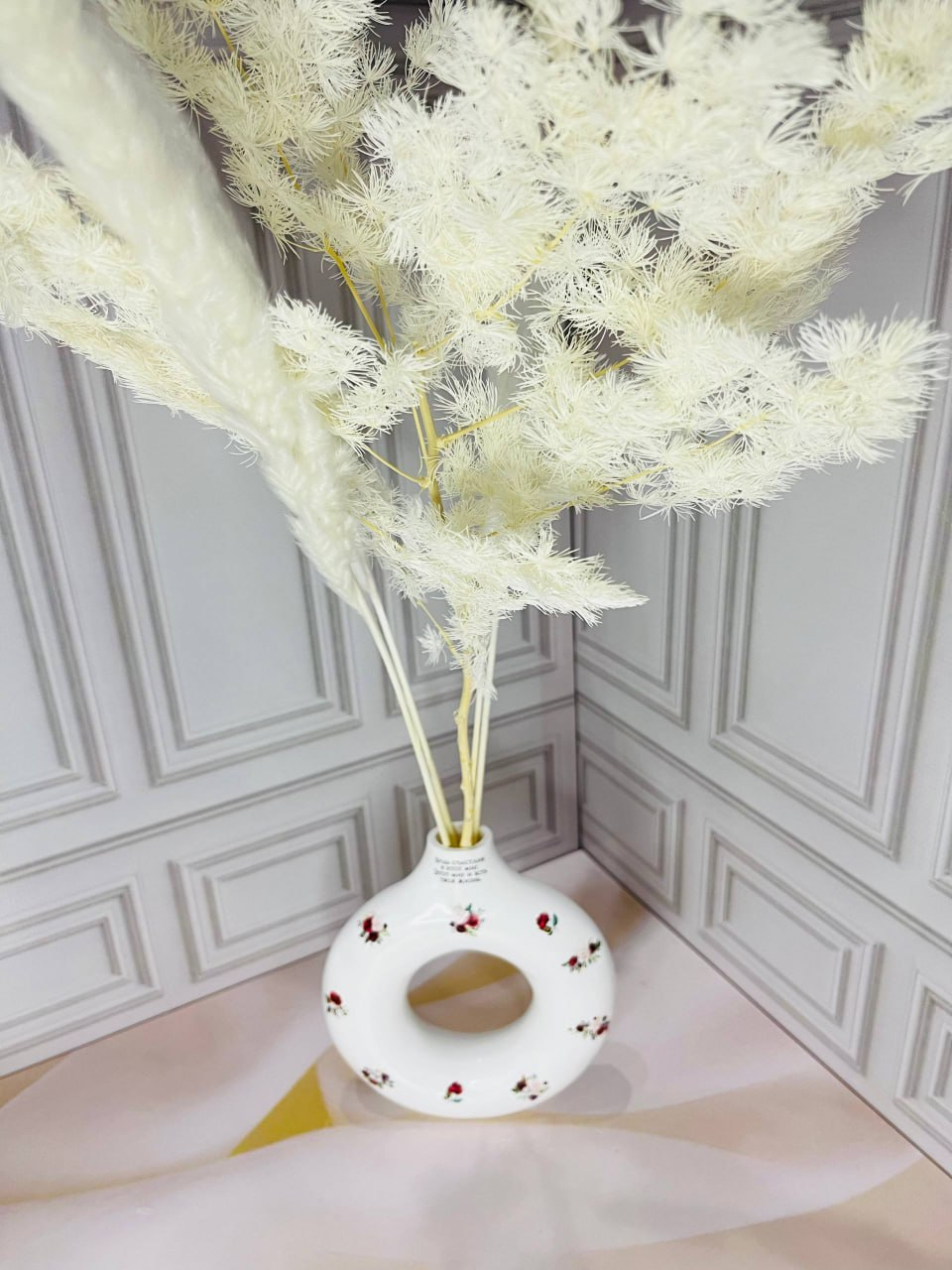 A handcrafted decorative vase made from high-quality eco gypsum. The elegant white color with decorative patterns gives the piece a refined and artistic appearance, making it a beautiful accent for home interiors.