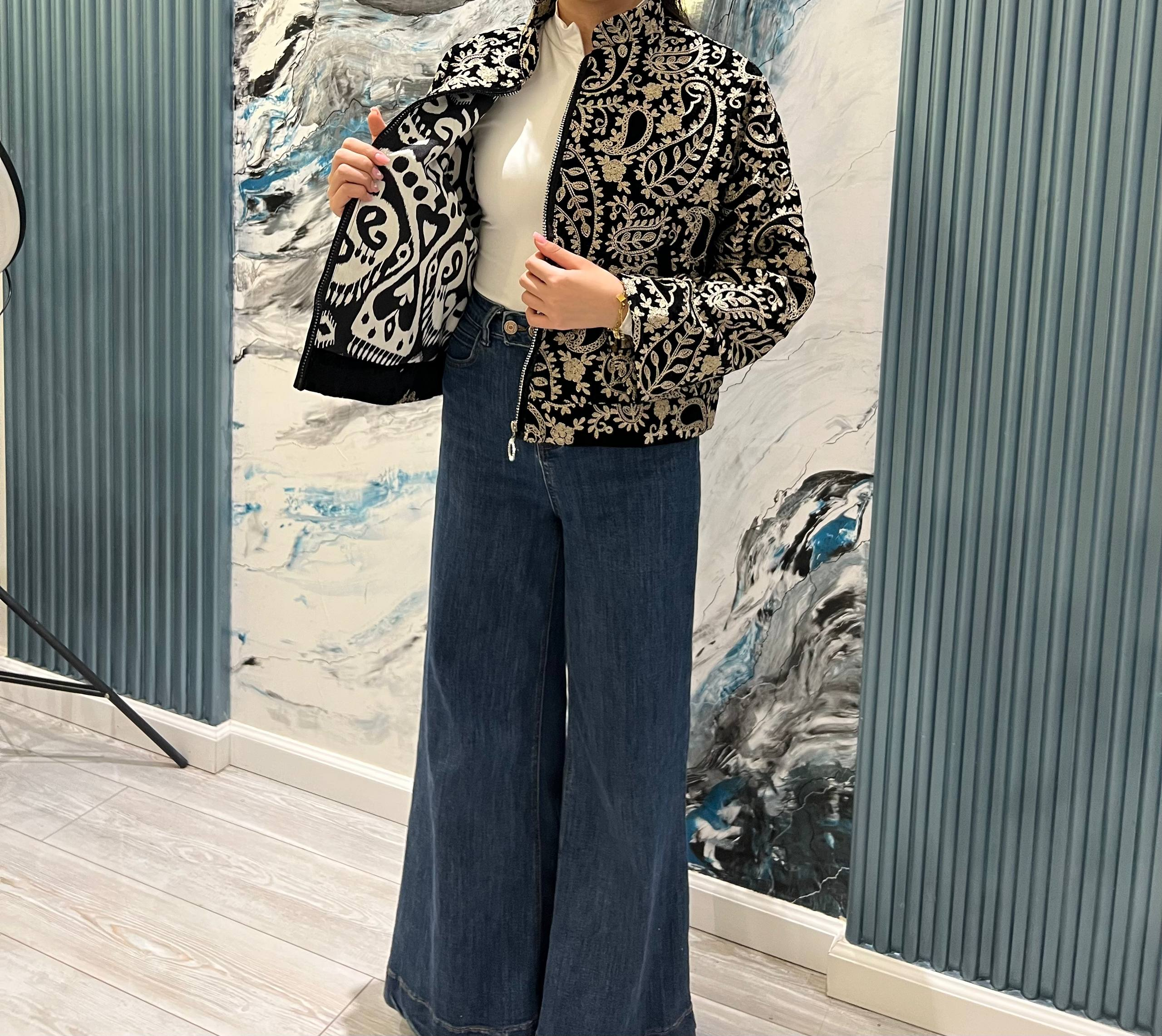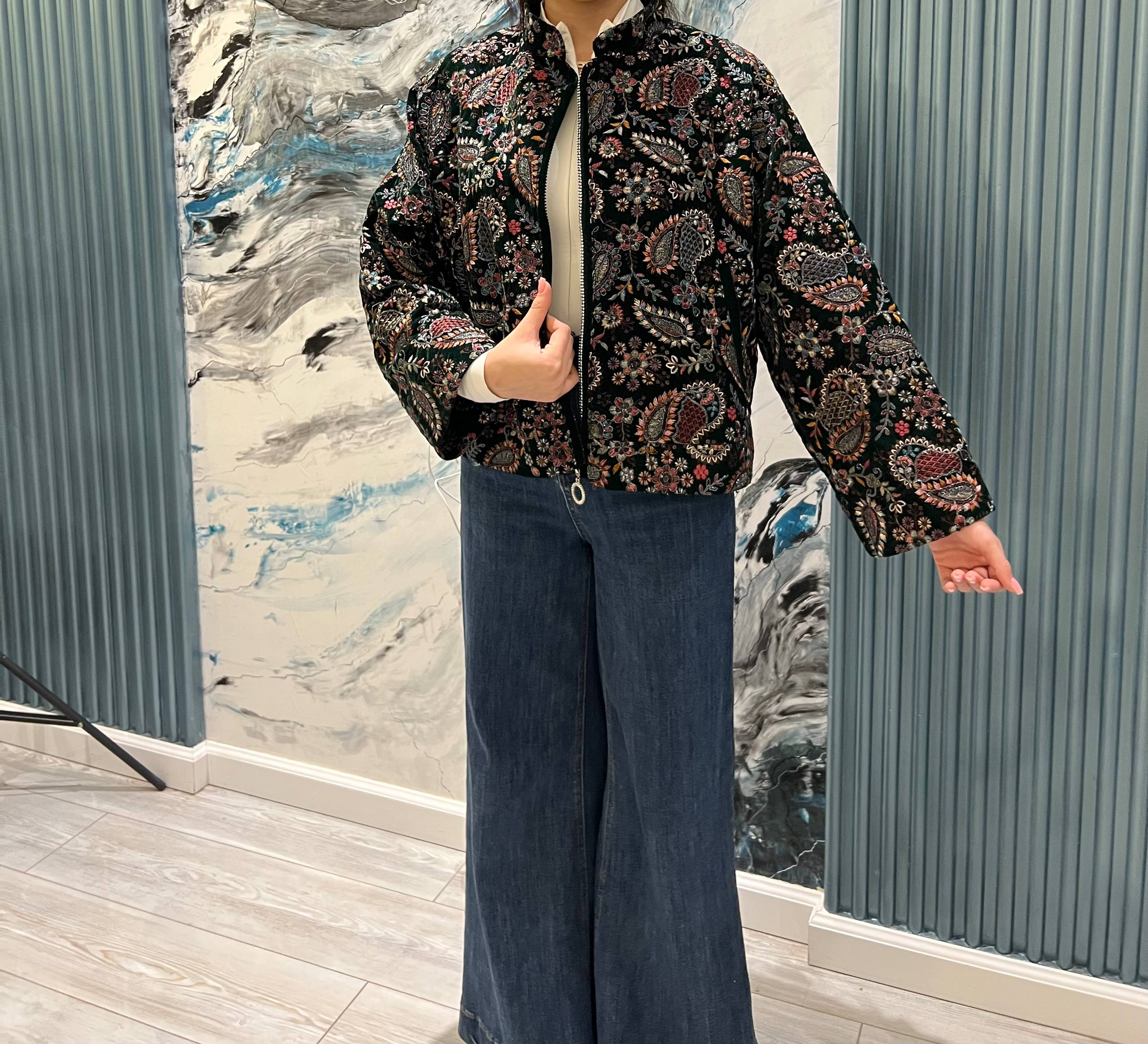 Introducing the elegant Lion Velvet Jacket in a classic black, featuring intricate floral and paisley embroidery for a refined and stylish look.
