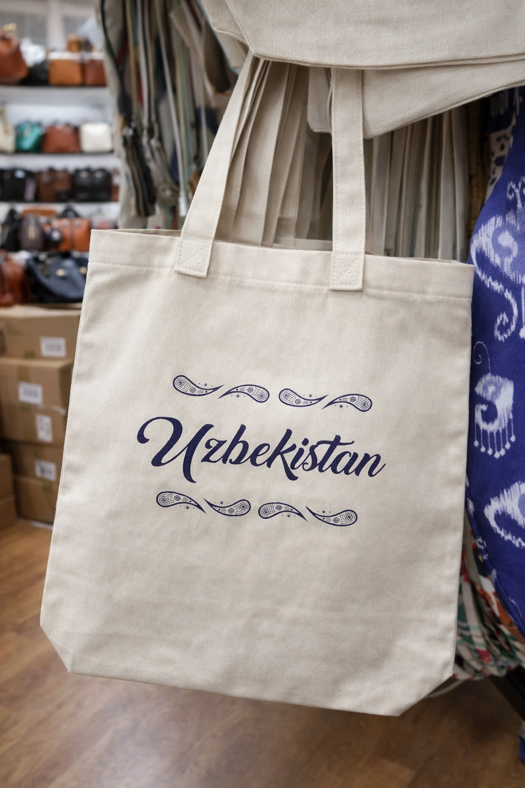 This classic canvas tote bag features a clean and elegant “Uzbekistan” print, inspired by the cultural identity and heritage of Central Asia. Its minimalist design makes it a versatile and timeless accessory suitable for everyday use.
