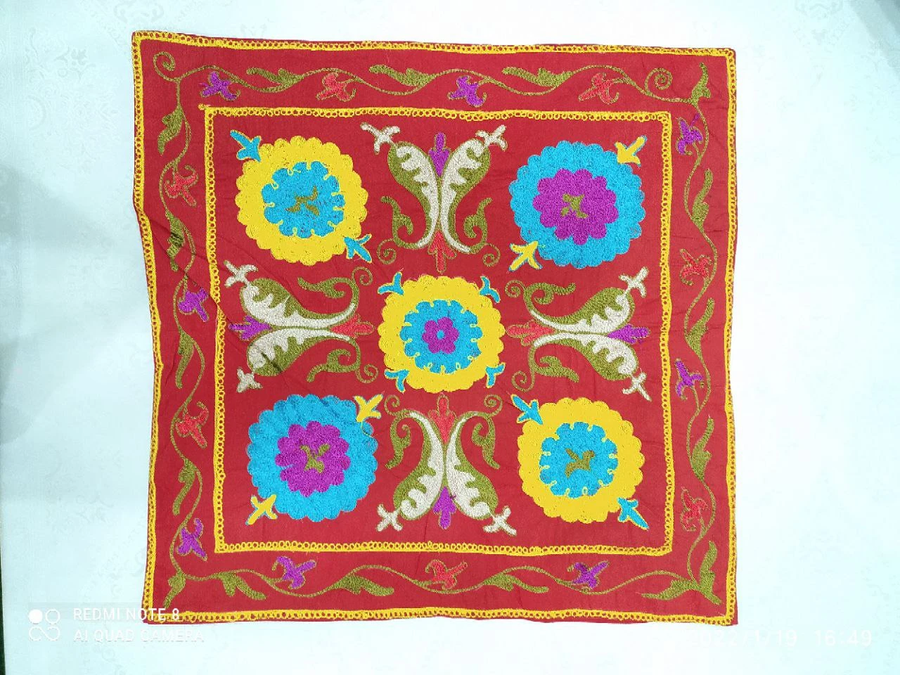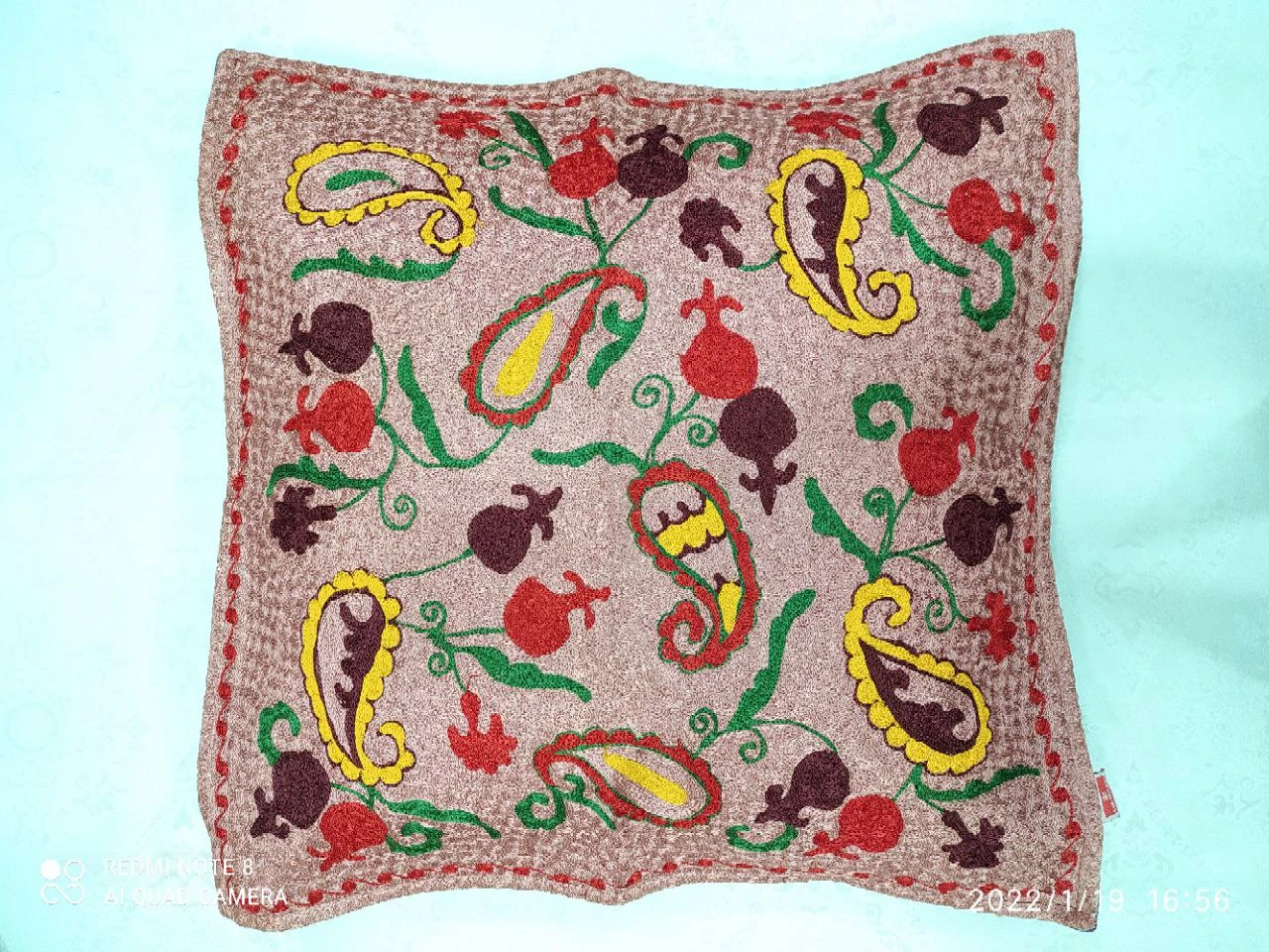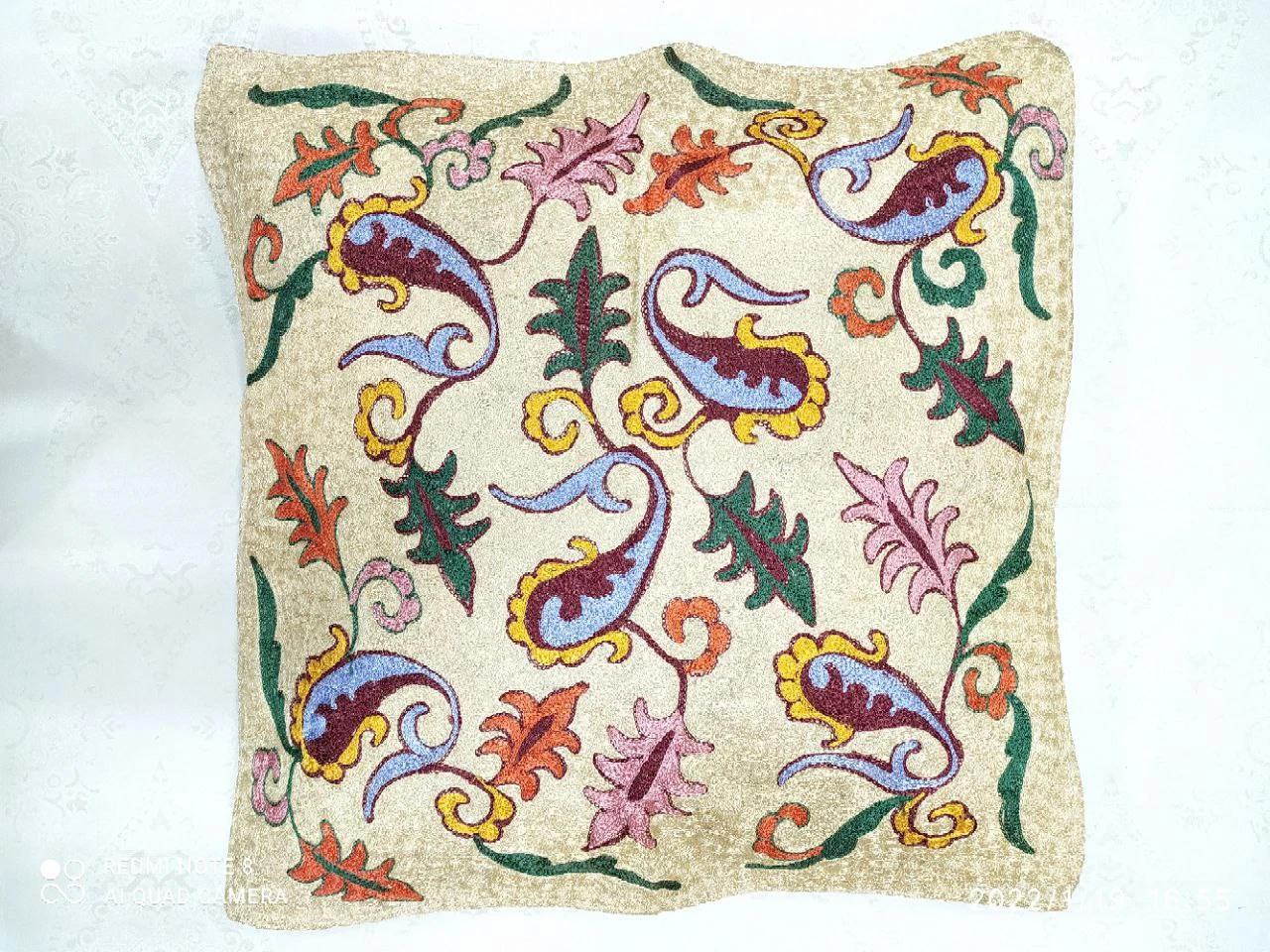 This exquisite piece showcases traditional Popop style with intricate Tanbur embroidery, crafted by hand using fine viscose thread. The raised ornamental patterns feature elegant curves and detailed motifs, while the soft texture and natural shine of viscose fibers accentuate the design's richness. Ideal as a cultural accent for modern interiors or as a meaningful gift, this unique artisanal work embodies a refined blend of heritage craftsmanship and modern elegance.