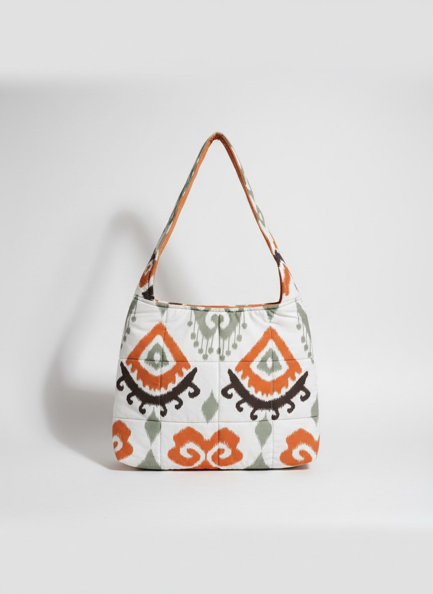 A stylish quilted women’s bag made from cotton satin fabric. This bag combines elegance with functionality, offering both aesthetic appeal and practical use.