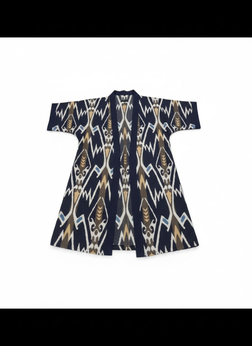 A traditional women’s chapan made from cotton satin fabric. The garment is crafted from printed atlas satin fabric and lined with satin, providing comfort and an elegant finish. The design reflects a refined national style while remaining practical for modern wear.