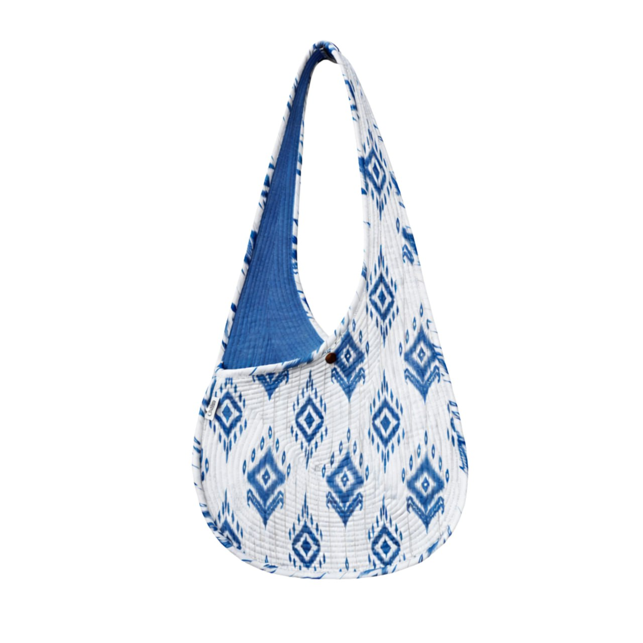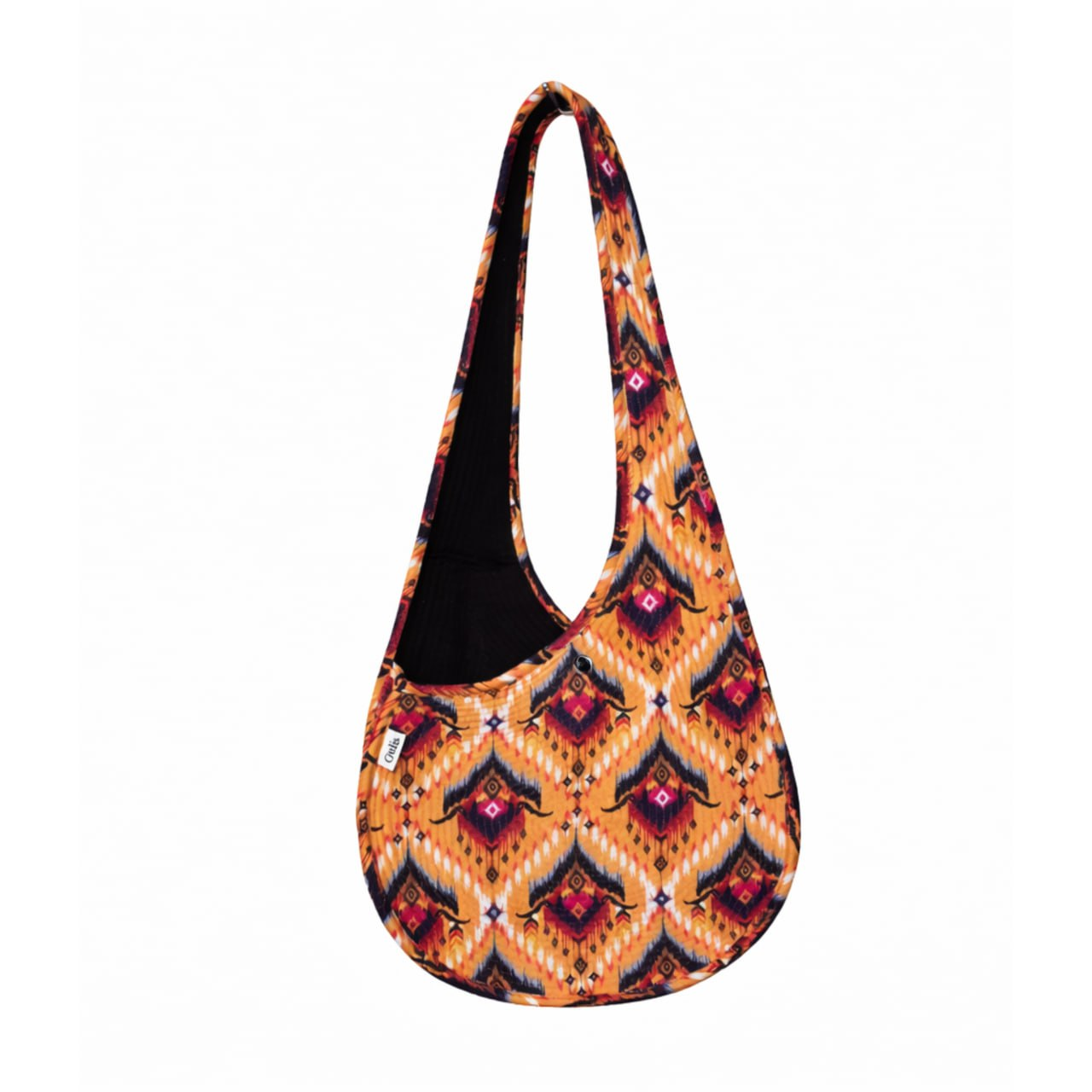 The Boho bag is crafted from dense quilted textile featuring a traditional national ornament. The geometric pattern gives the piece a distinctive ethnic character, making it expressive yet refined. Its soft, rounded shape ensures comfort and practicality for everyday use.