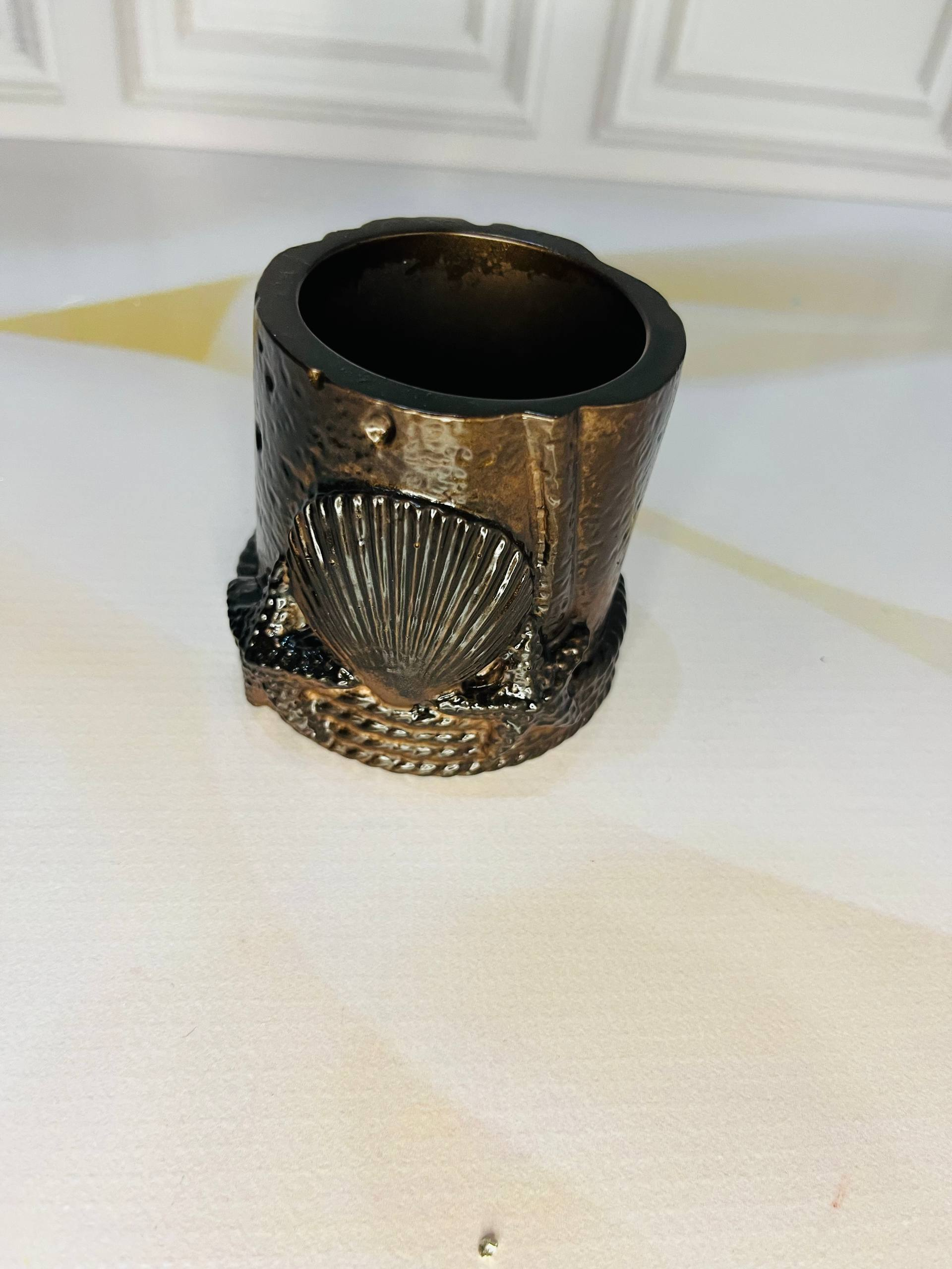 A decorative handmade cup made from high-quality eco gypsum. Its minimalist and elegant design makes it perfect for storing small items such as: