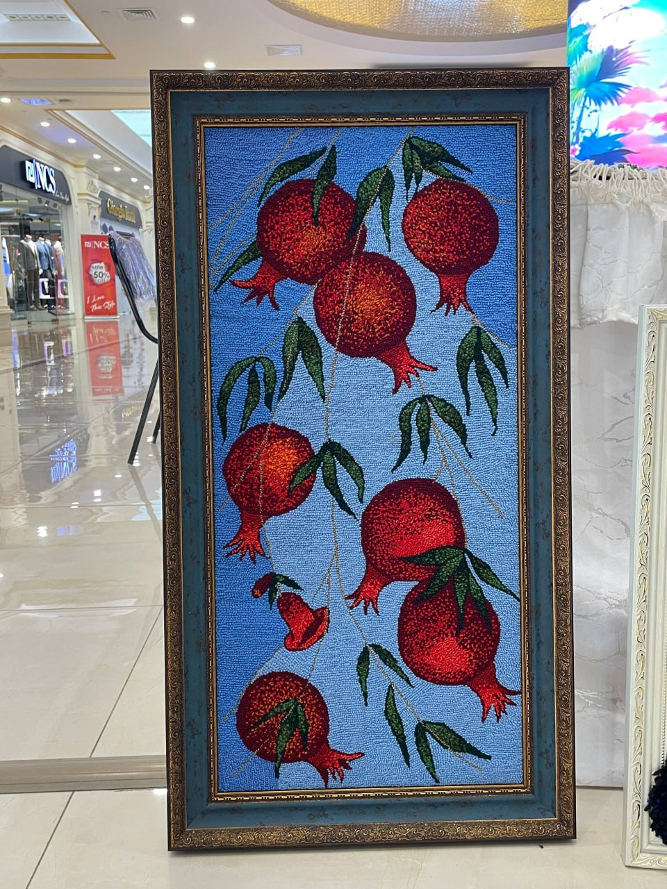 A handcrafted decorative wall panel made with acrylic and semi-wool yarns. The design is created on a byaz fabric base and features rich colors and textured embroidery, giving the artwork a vibrant and elegant appearance. The panel is beautifully placed in a frame, making it a perfect decorative element for home interiors or cultural spaces.