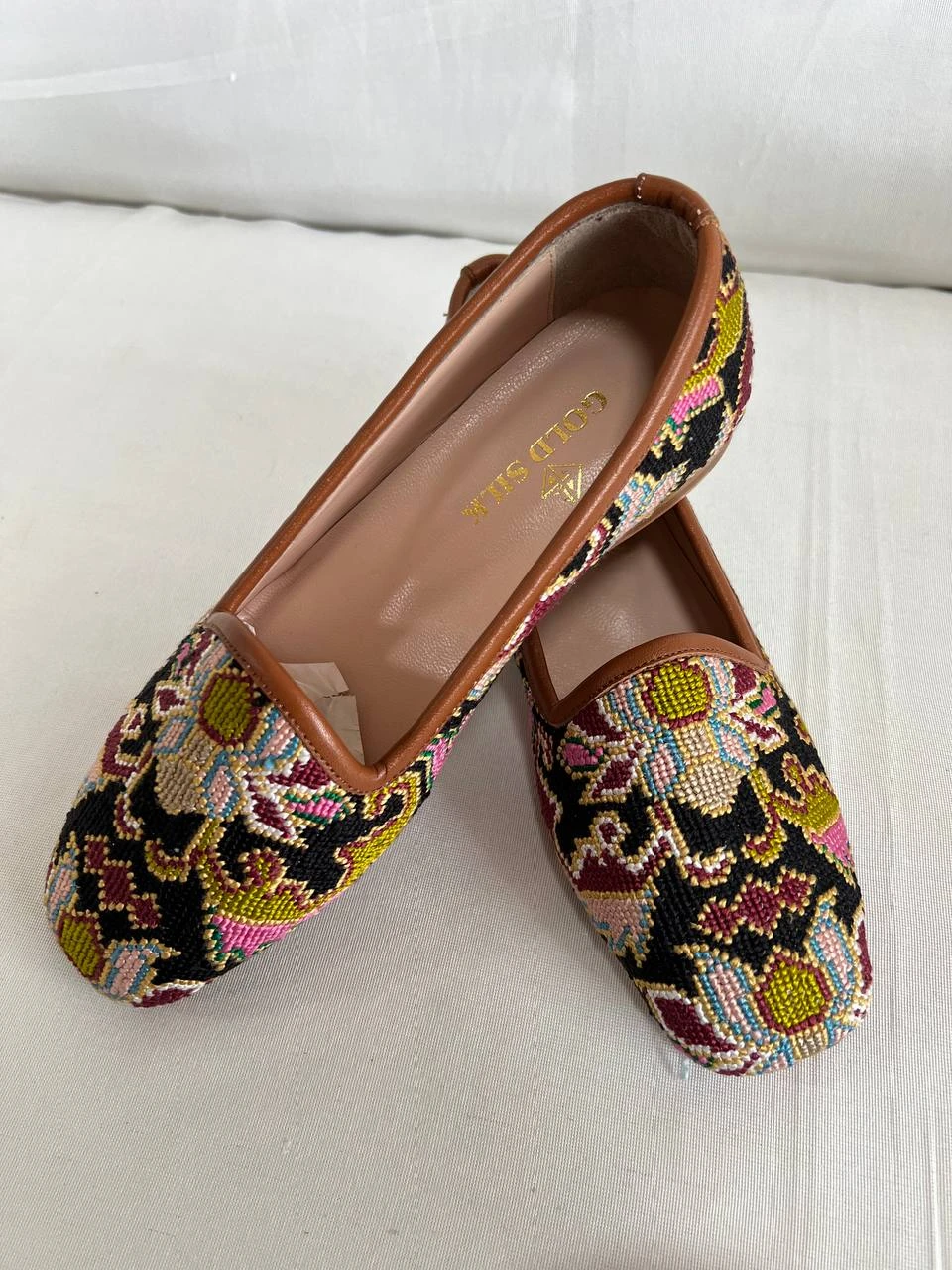 These embroidered flats pair effortlessly with traditional dresses, ethnic outfits, casual ensembles, and contemporary fashion styles. Each pair is uniquely handmade, reflecting authentic craftsmanship and artistic expression. Designed for women who appreciate quality, originality, and cultural elegance, these flats are a sophisticated addition to any wardrobe.