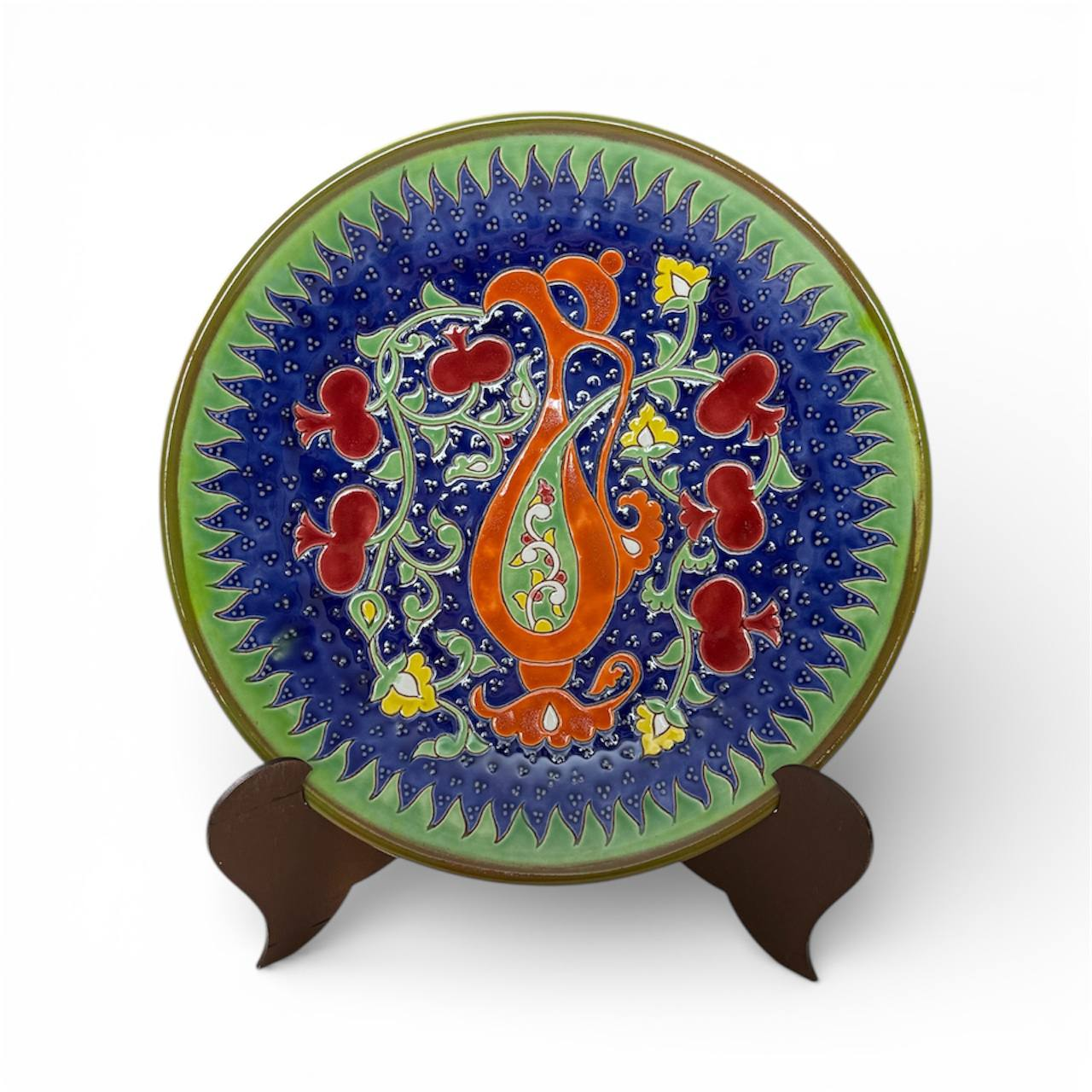 The bird represents harmony and elegance, while the pomegranate symbolizes prosperity and abundance, making this plate both a decorative and meaningful piece of art. Carefully handmade, each plate carries unique details and craftsmanship.
