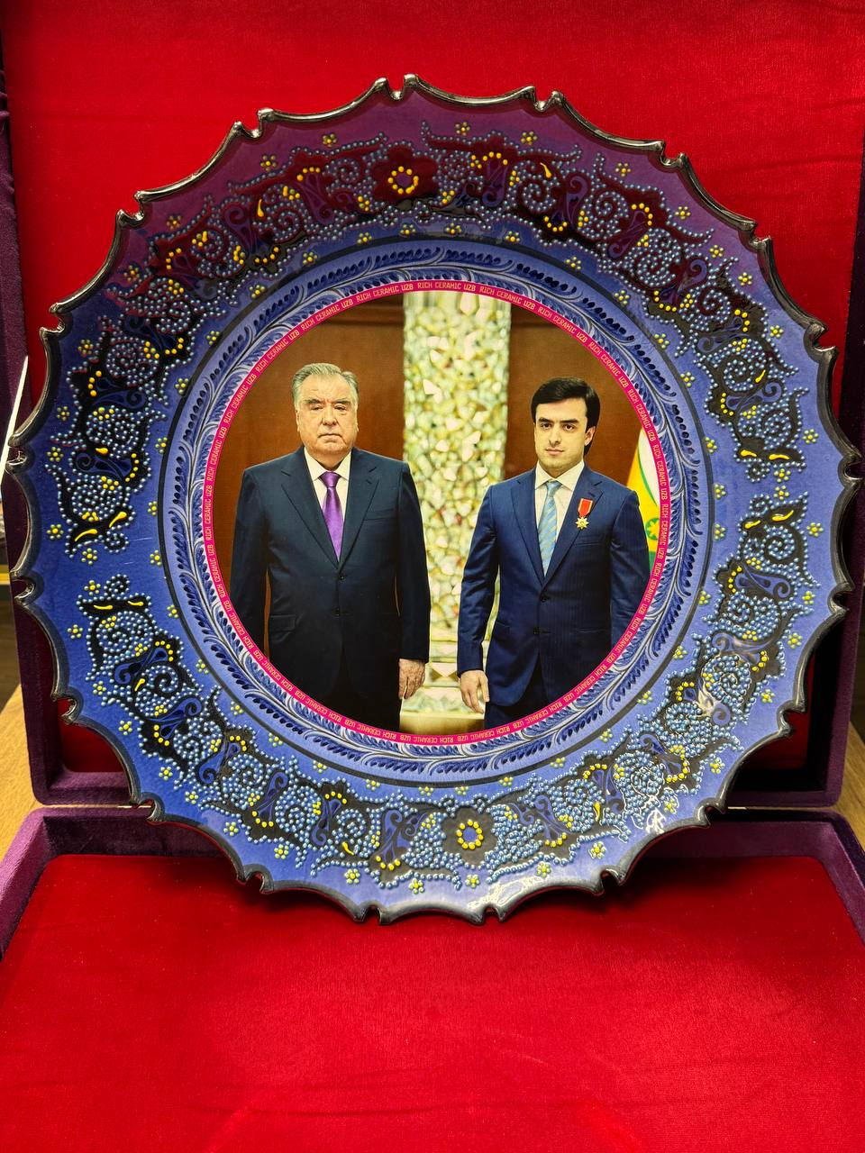 This handcrafted Uzbek decorative plate features a detailed ornamental design combined with a central portrait composition, creating a unique and meaningful artistic piece. Made with traditional ceramic techniques, the plate showcases intricate patterns and rich colors inspired by Uzbek cultural heritage.