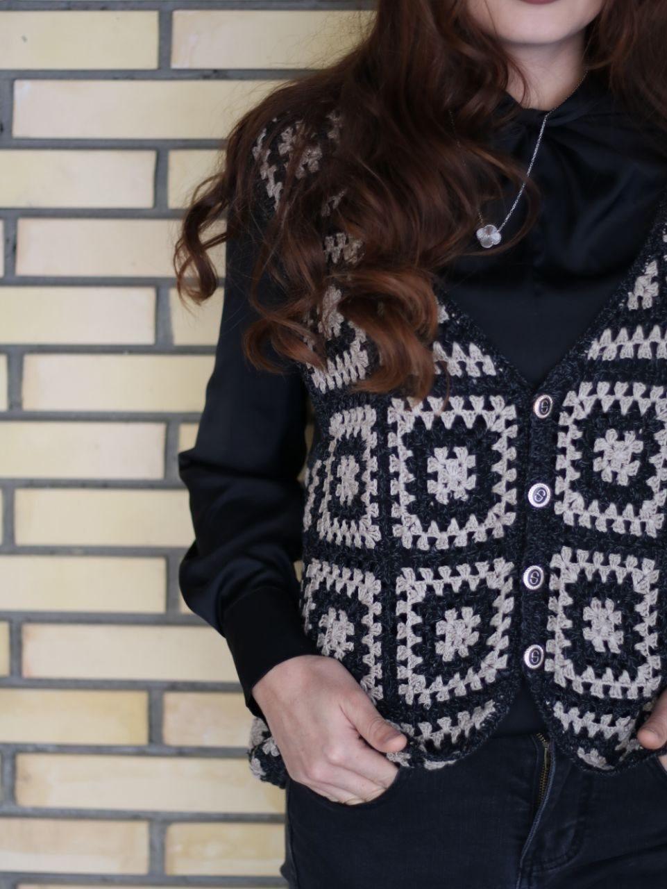 This handmade crochet motif vest is a stylish blend of traditional craftsmanship and modern fashion. Designed with intricate geometric crochet patterns, it offers a unique textured look that elevates any outfit.