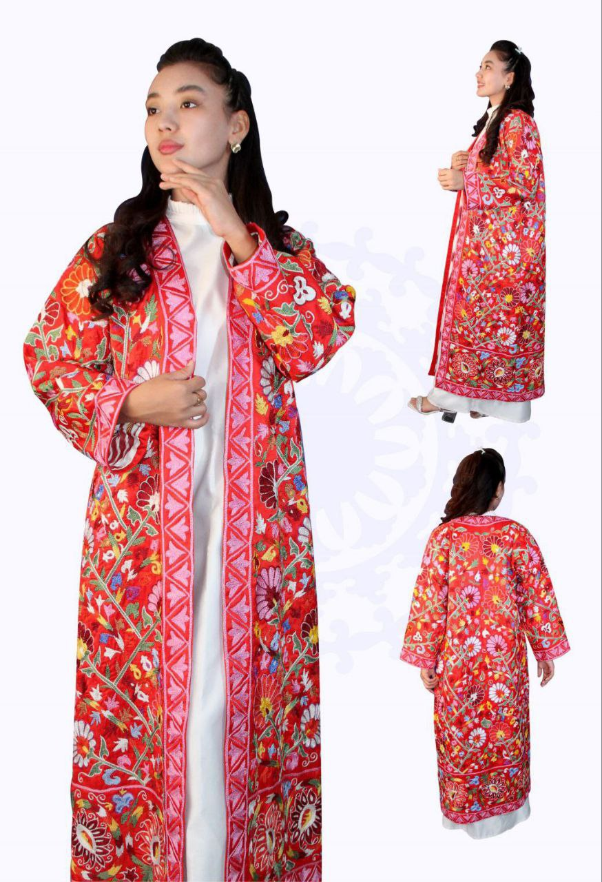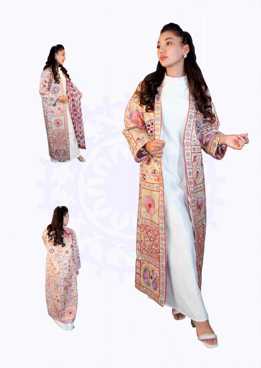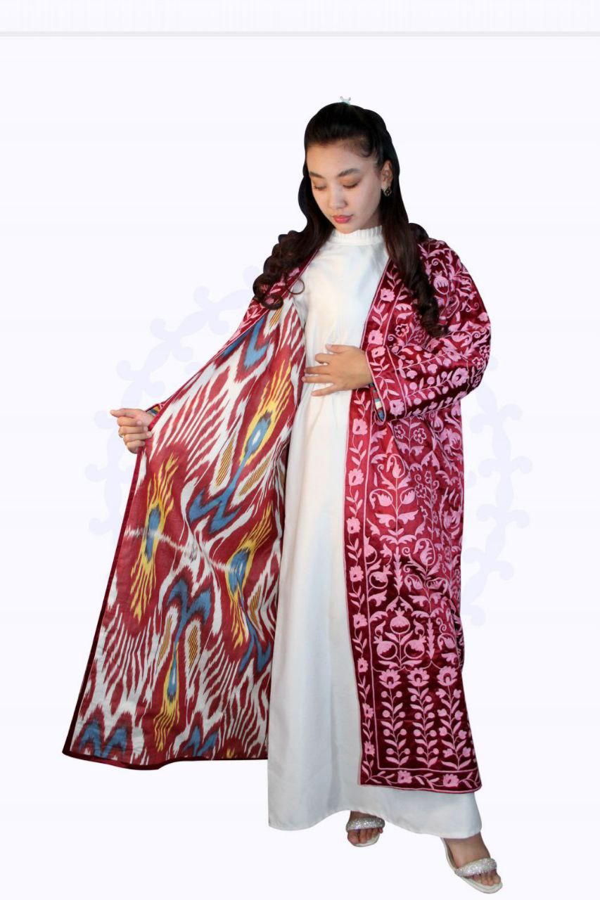 A unique handmade garment that combines traditional Uzbek style with modern practicality.