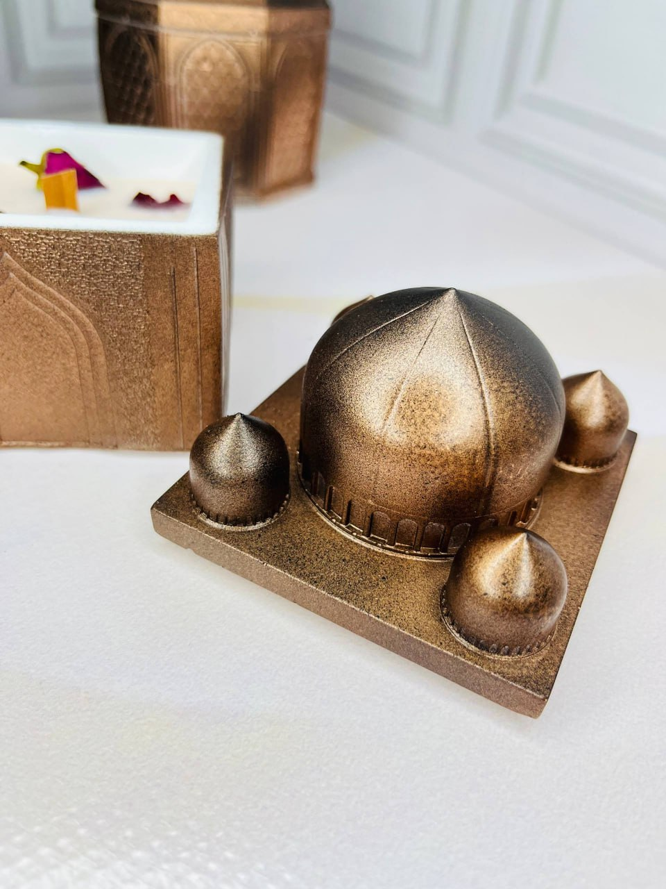 A handcrafted decorative piece that combines both a jewelry box and an aroma candle. The elegant design makes it a beautiful decorative element for home interiors while also being practical for storing small items.