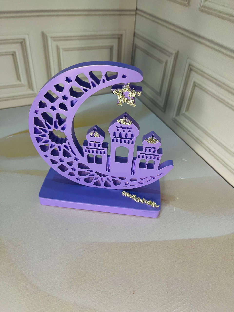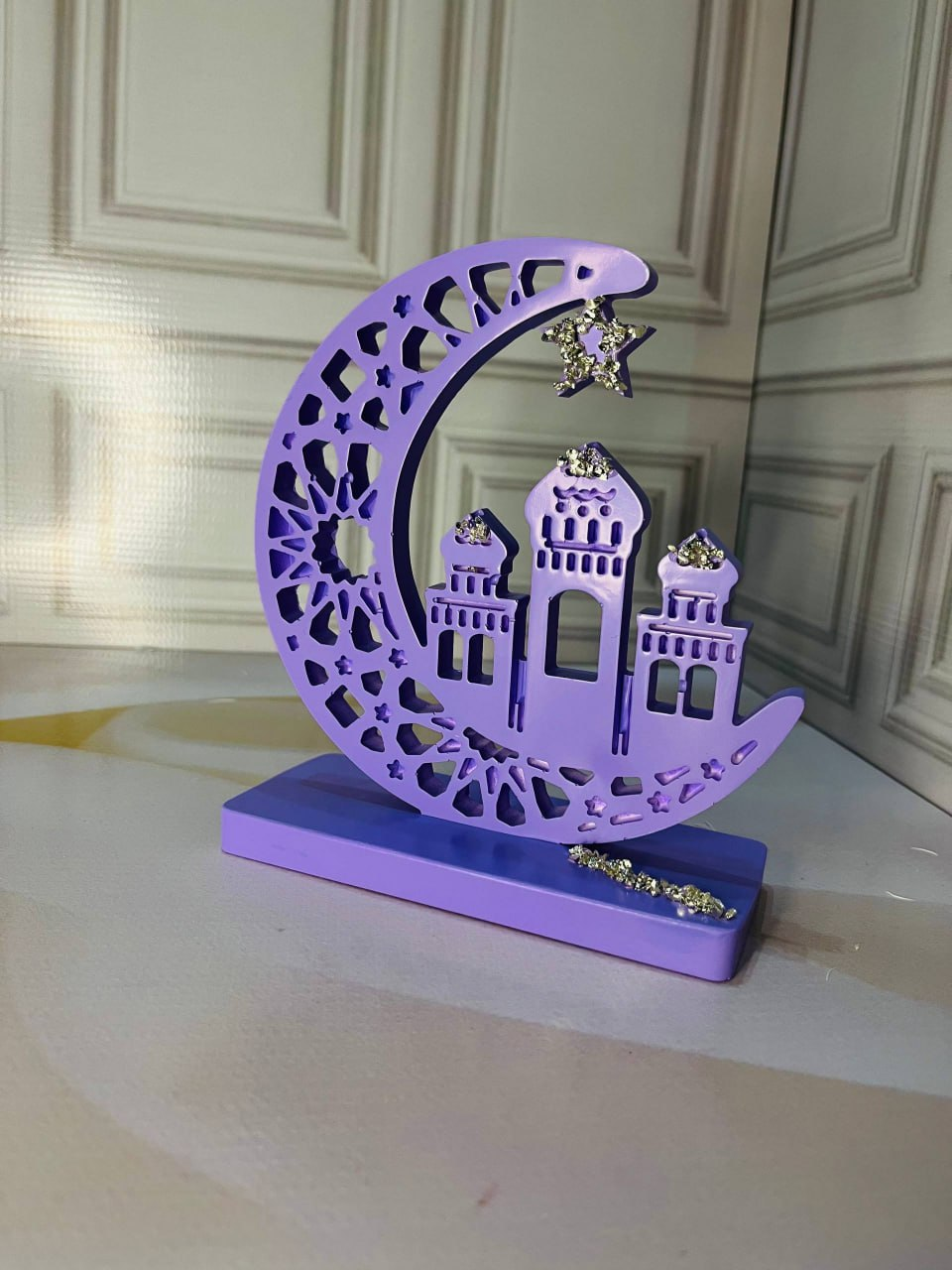 A handcrafted decorative figurine shaped like a mosque. The elegant purple color gives the piece a unique and artistic appearance, making it a beautiful decorative accent for home interiors.