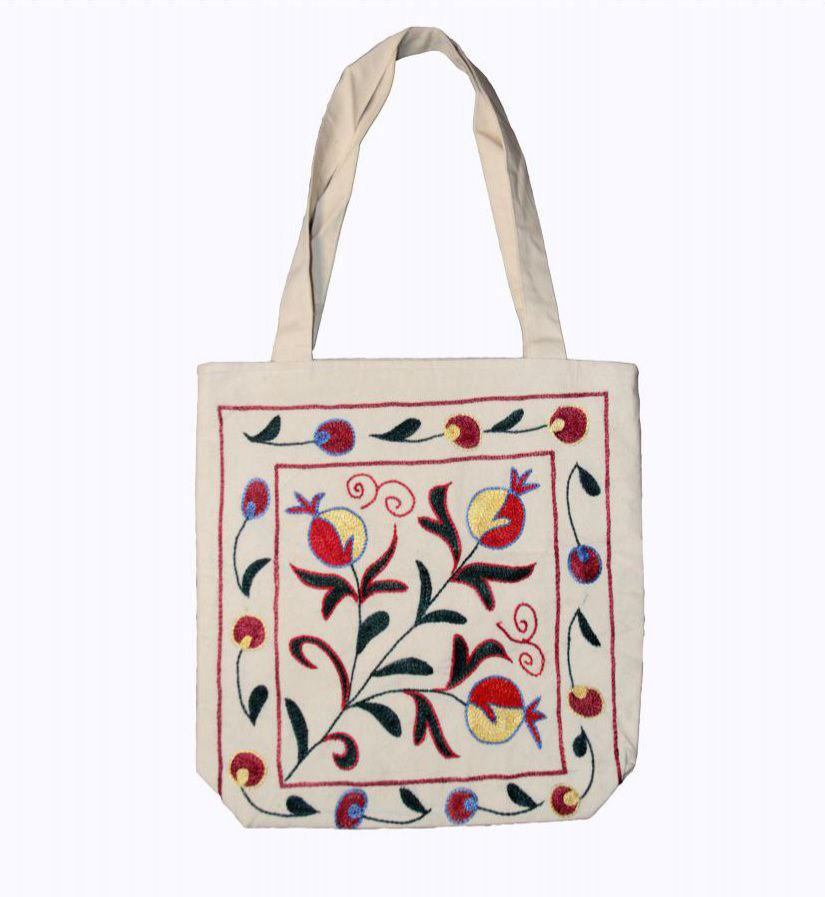 This beautiful handmade tote bag features authentic traditional embroidery inspired by Central Asian folk art. Crafted from natural cotton fabric, the bag is decorated with colorful floral and pomegranate motifs, symbolizing prosperity and harmony.