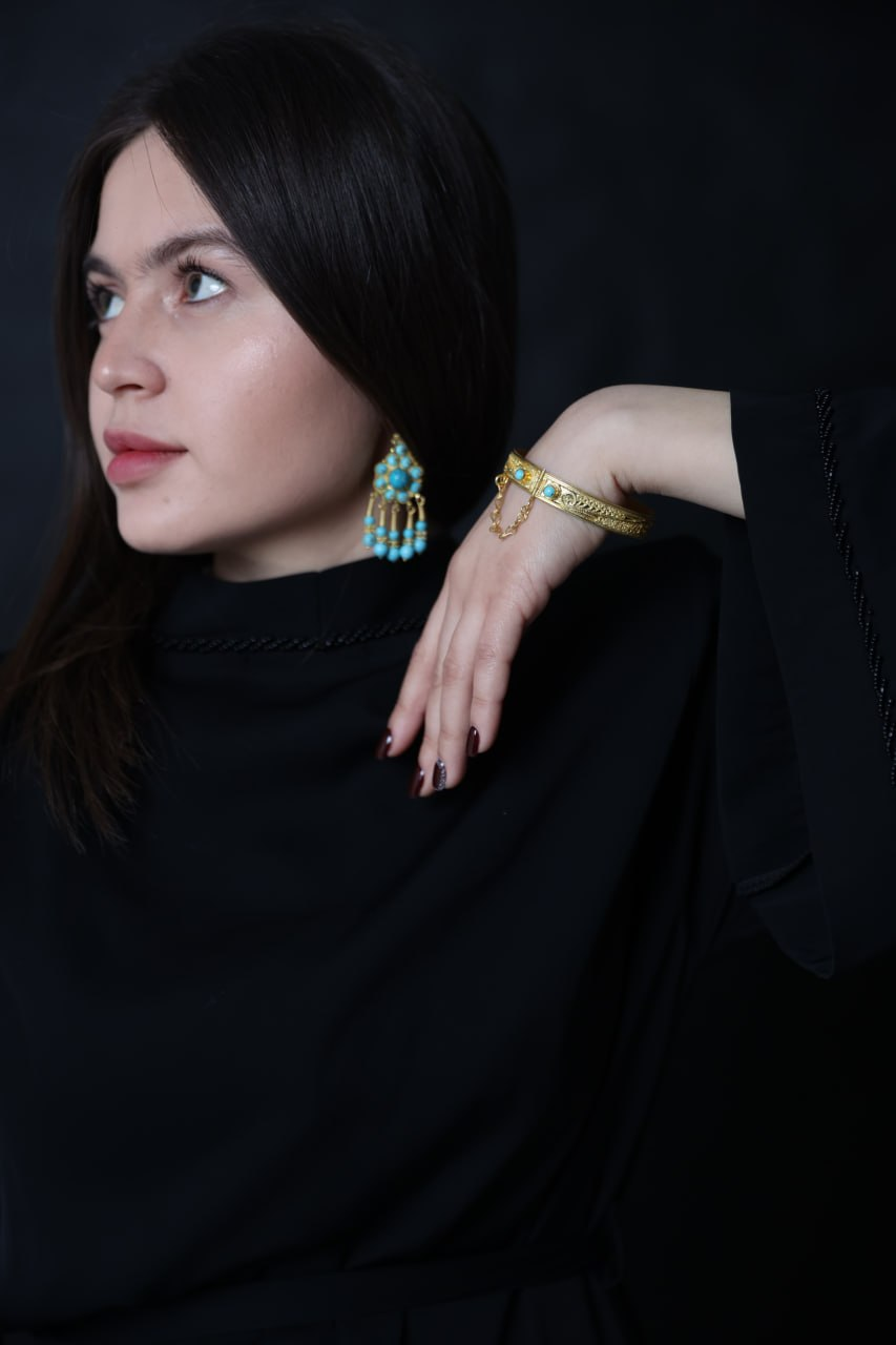 The statement earrings add a bold yet refined touch, while the matching pendant necklace creates a harmonious and sophisticated look. Perfect for: