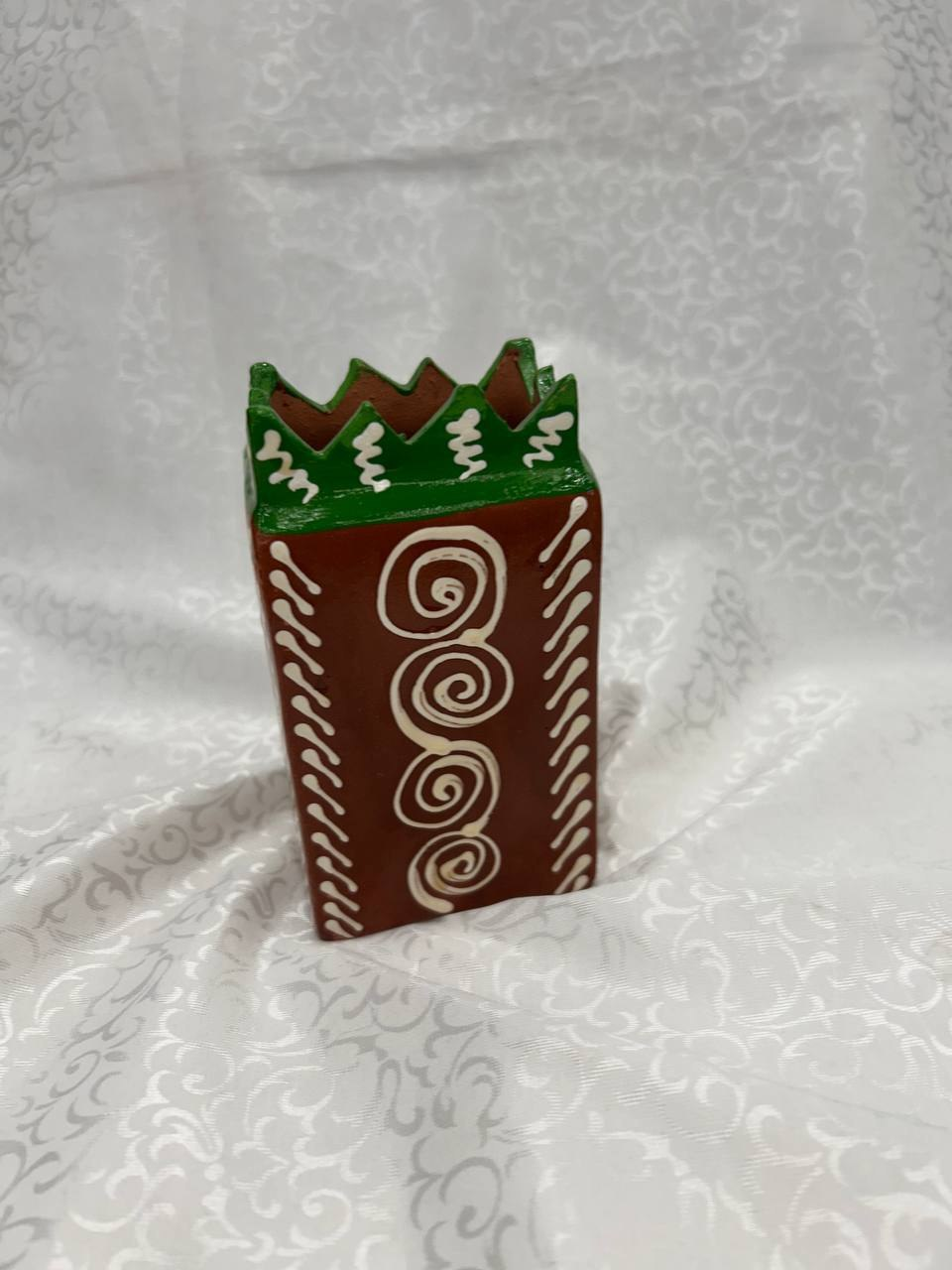 This unique handmade ceramic pen holder is designed in a traditional Uzbek style, featuring a cheerful character holding pomegranates — a symbol of abundance and prosperity.