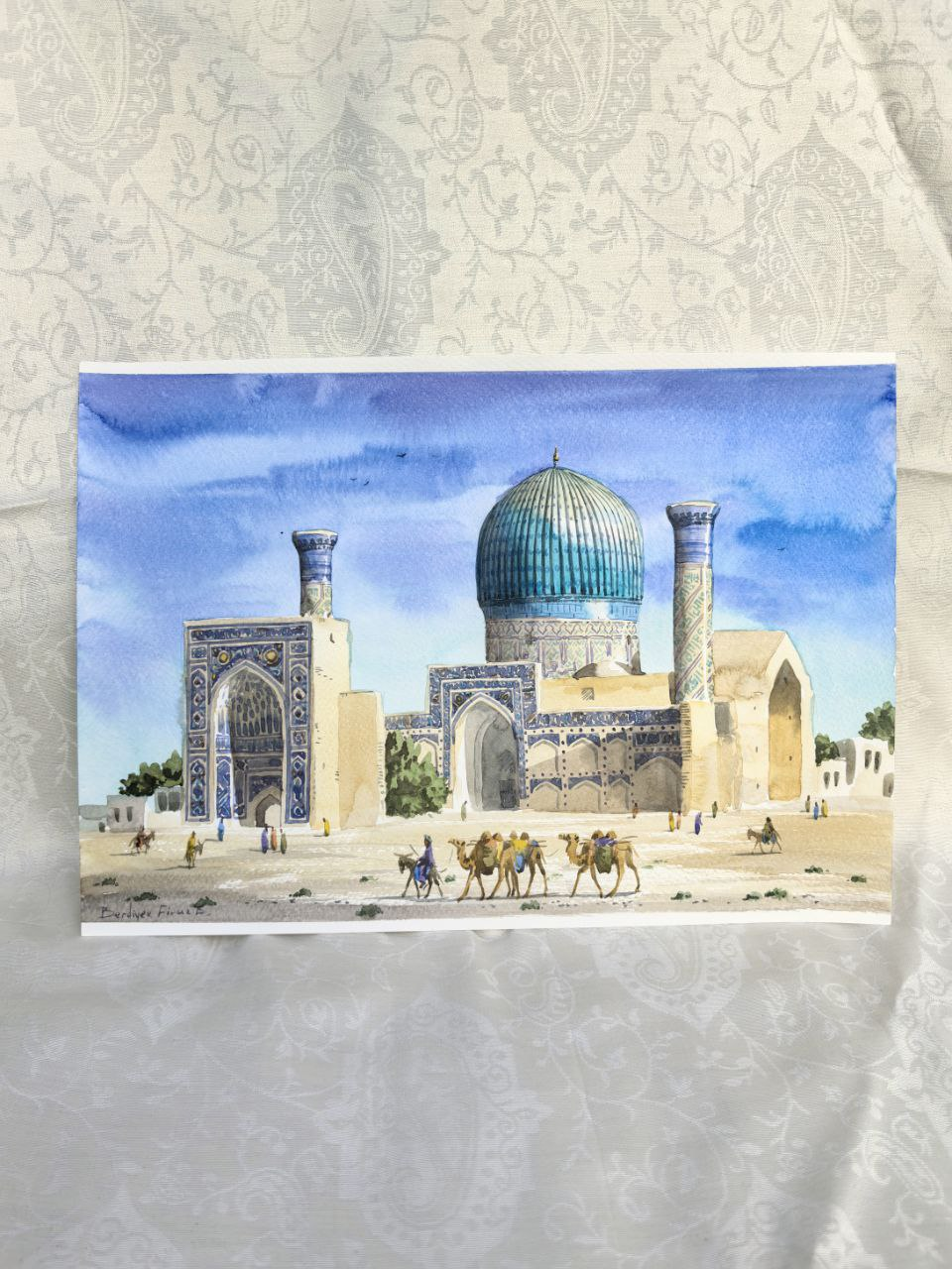 A decorative wall artwork created on paper using watercolor techniques. The soft transitions of color and delicate brushwork give the piece a light, expressive character.